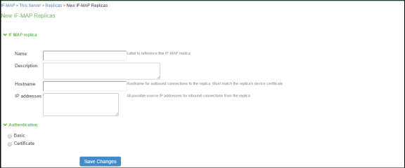 - Click the Replicas tab and then select New IF-MAP replica to configure Replica settings.