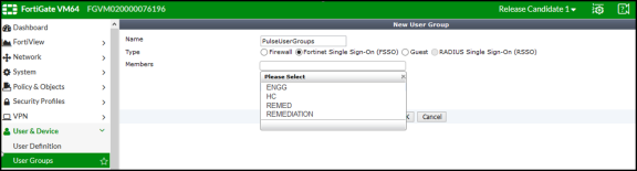 Create matching User groups. Select User & Device > User Groups. Click create New and enter the following data: