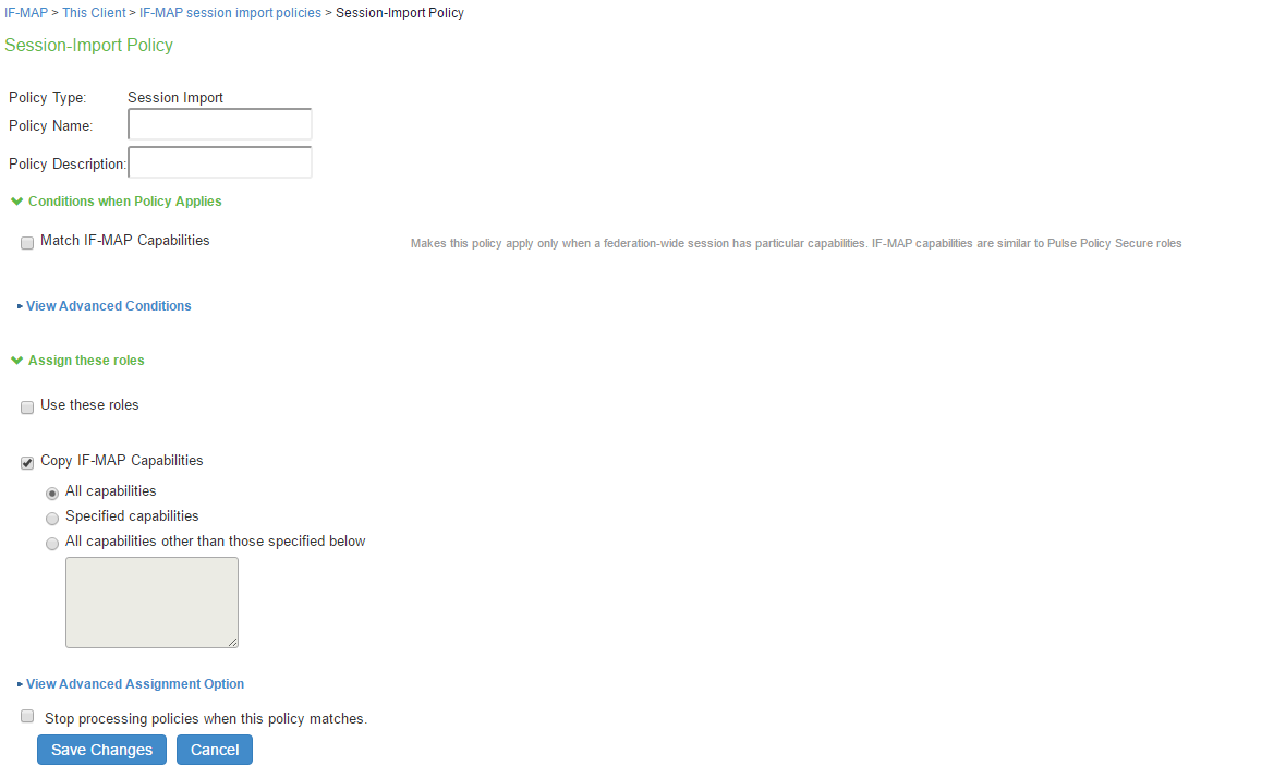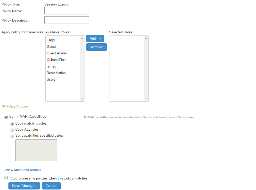 - Copy all Roles-Copies all of the roles from the user session to the IF-MAP capabilities data.