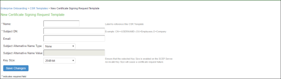 - In the admin console, choose Users > Enterprise Onboarding > CSR Templates.