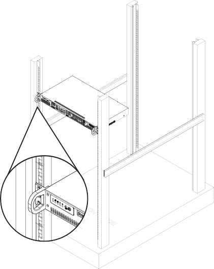 3.Insert the mounting screws into the thru holes in the front of the chassis and through the thru holes in the rack.