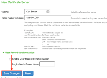 - Under Servers, select the certificate auth server from the authentication drop-down menu.