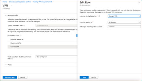 - Configure Automatic VPN rules in the right below order and save the profile.