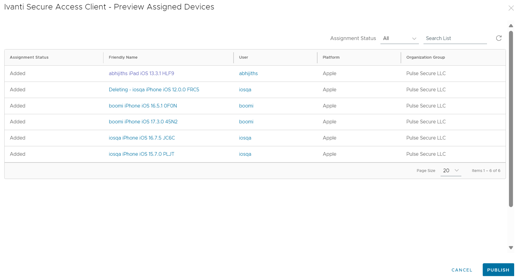 Click Publish to push the App Catalog to the endpoints in the Groups that you assigned.