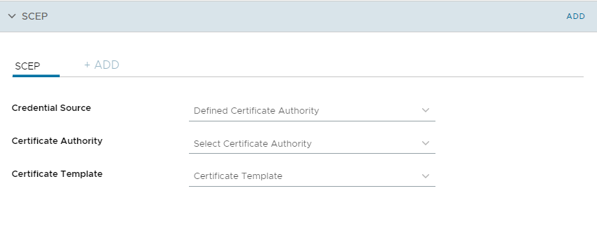 To create the credential source for certificate authentication, choose SCEP.