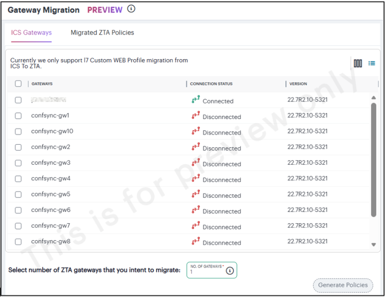 In the Select number of ZTA Gateways that you intent to migrate box, enter the number of ZTA Gateways to which you want to migrate the ICS configurations.