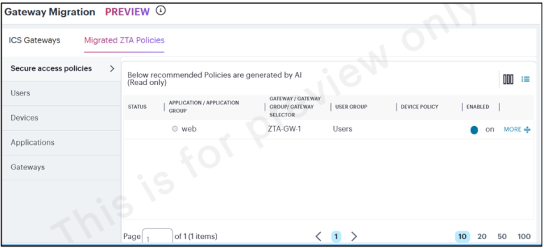 •Simplifies migration from ICS to modern ZTA using AI recommendations.