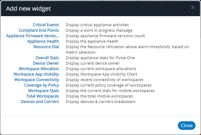 7.(Optional) Remove a widget by clicking its Remove Widget control.
