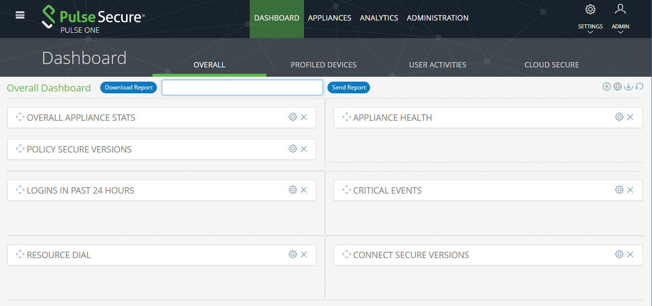 A widget layout summary for the dashboard appears. For example, for the Overall tab: