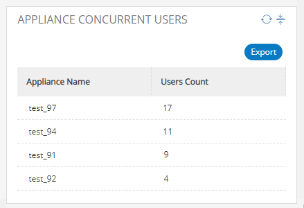 Click Export to save the contents of the table as a Comma Separated Value (CSV) file, see Exporting Dashboard Information.