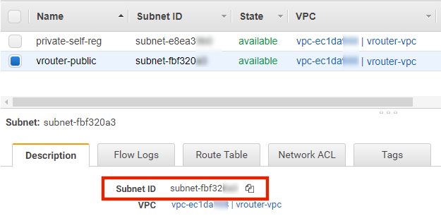 11.Select a third subnet (either private or public, and in the same Availability Zone as step 9) and record its Subnet ID from the bottom panel. This subnet be used for the management interface of the PCS appliance in a later procedure.