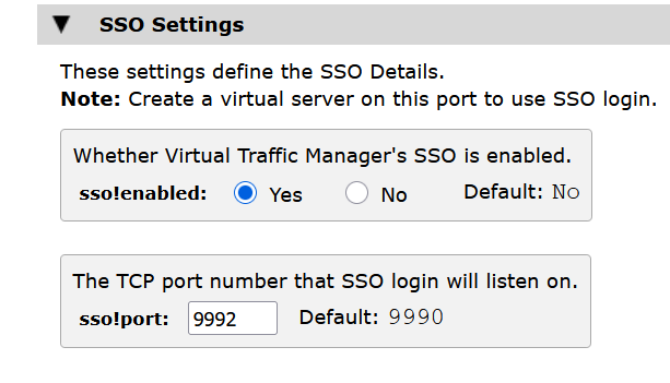 The virtual server must listen on the exact port defined in your SSO configuration (sso!port). If mismatch will cause SSO login to fail. After creating the virtual server, you need to set up a SAML Identity Provider and configure authentication for the virtual server using this Identity Provider.