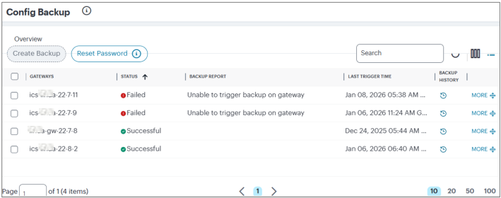 Config Backup allows tenant admin to take a config backup of any of their registered, supported gateways.