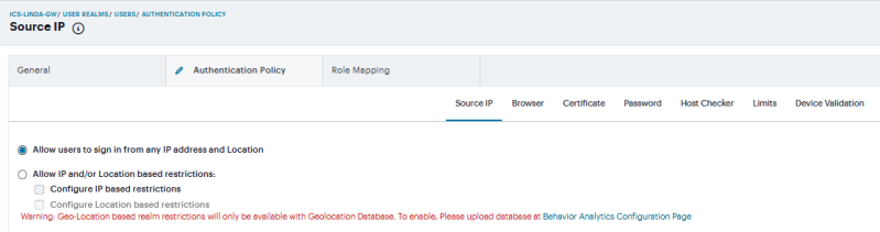 3.Select the Authentication Policy > Source IP.