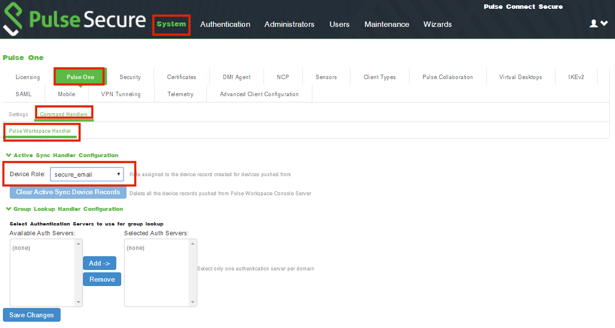 9.Navigate to System > Configuration > Pulse One > Command Handlers.