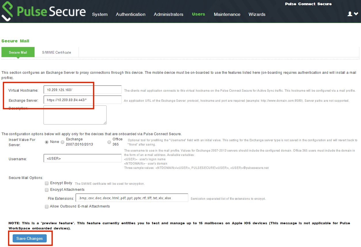 •ActiveSync server: mail.pulsesecure.net