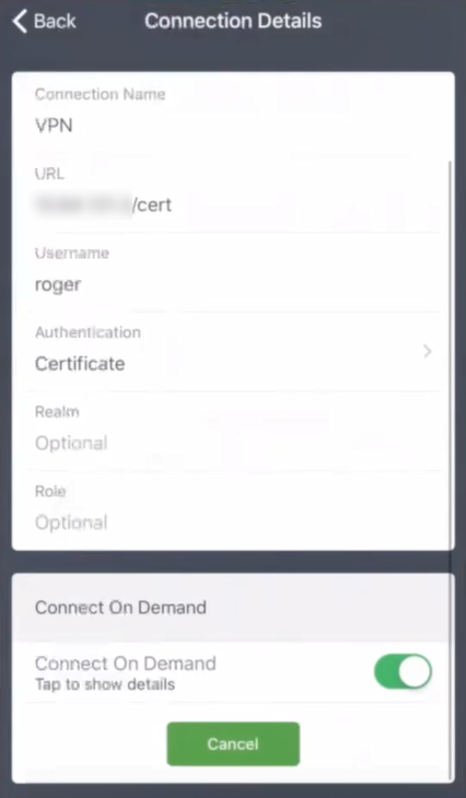 7.Press Connect on Demand to view configured VPN rules.