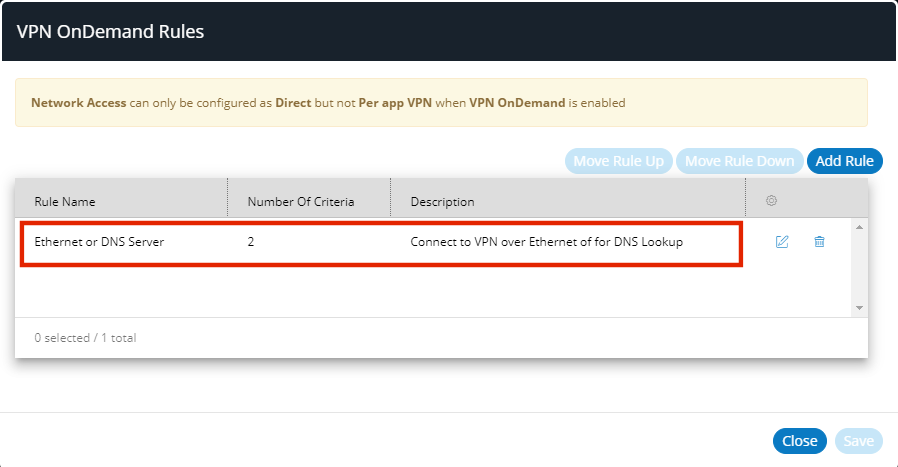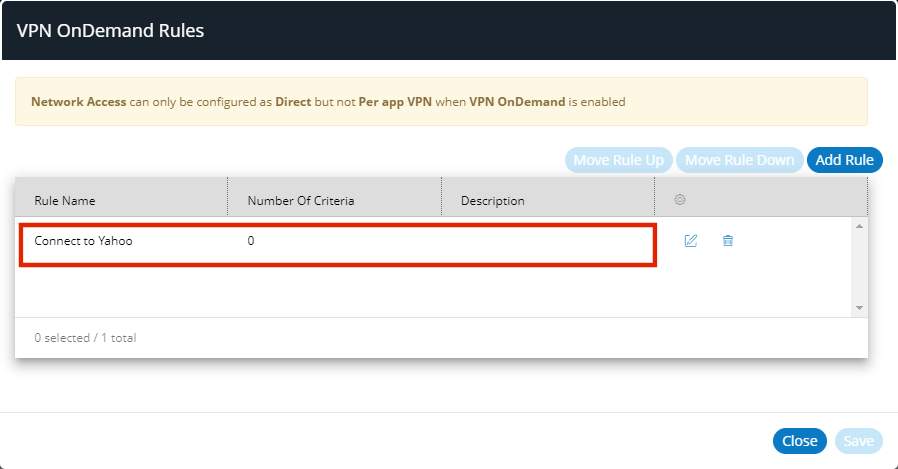 The rule is added to the list of VPN on Demand rules: