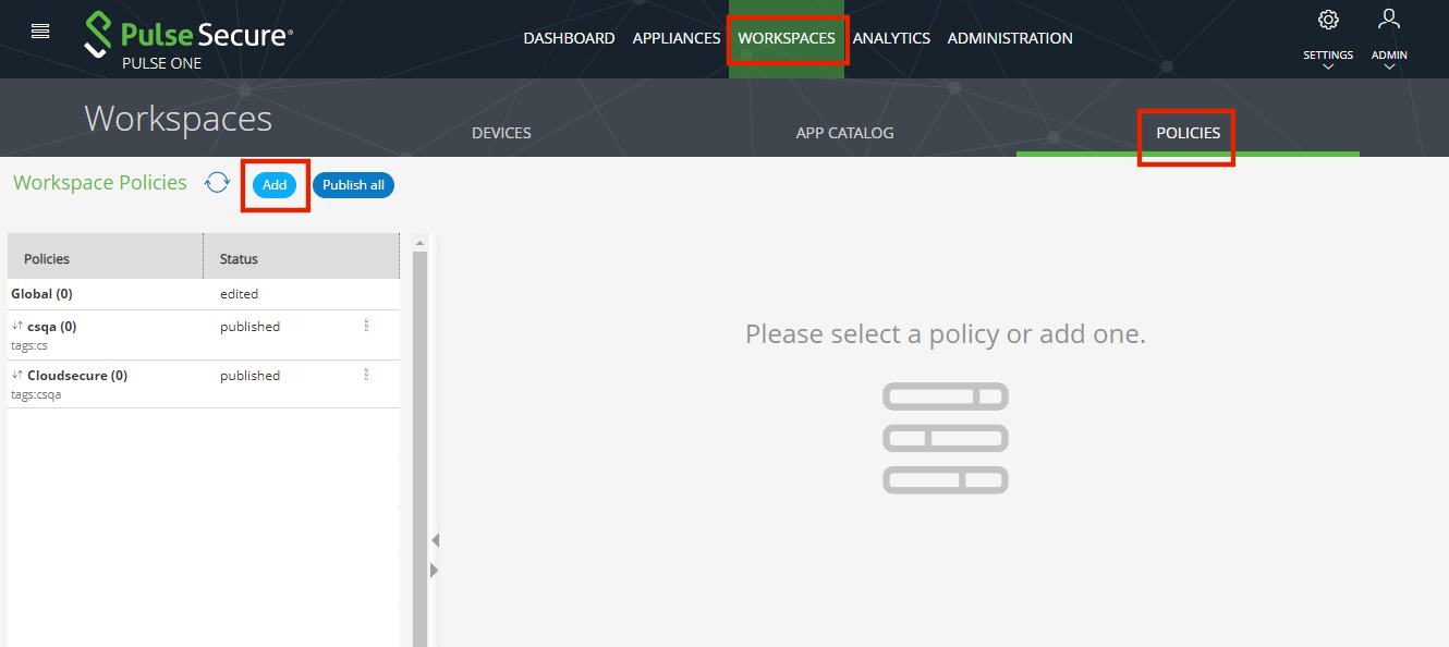 When a policy is created, it starts in the edited state. You can now add applications and properties to the policy before applying the policy to your mobile devices.
