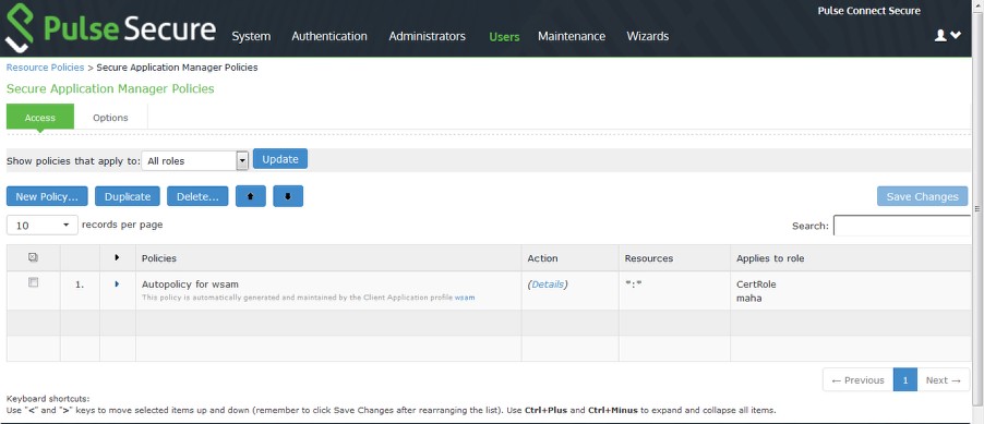 5.Navigate to Users > Resource Policies > SAM > Access control, create a SAM ACL with an Allow All option, and assign it to required Roles.