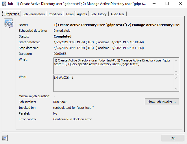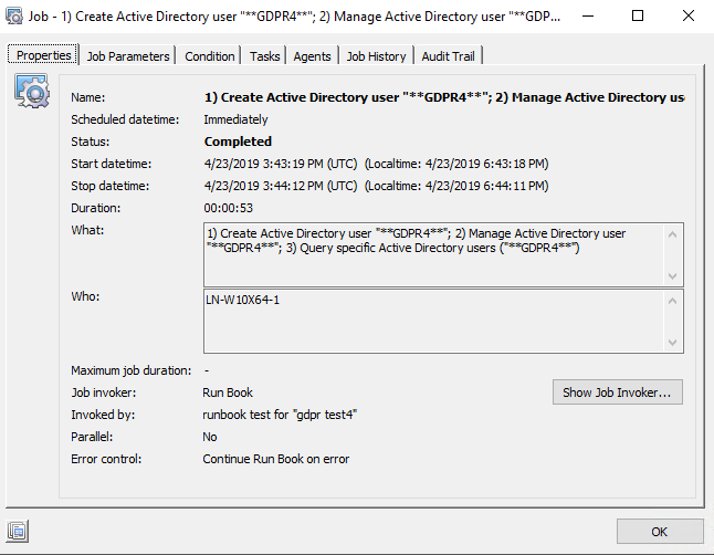 - Right-click the Job History, and click GDPR.