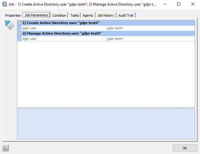 - Query information (that can be part of a Job Result if you have tasks that query for information; eg: Query AD Users)