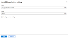 Click on New application setting once more. Configure the application setting with the following parameters, and then click OK.