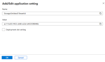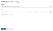 Value: Paste the value of the storage account connection string copied earlier during Gather Preliminary Information.