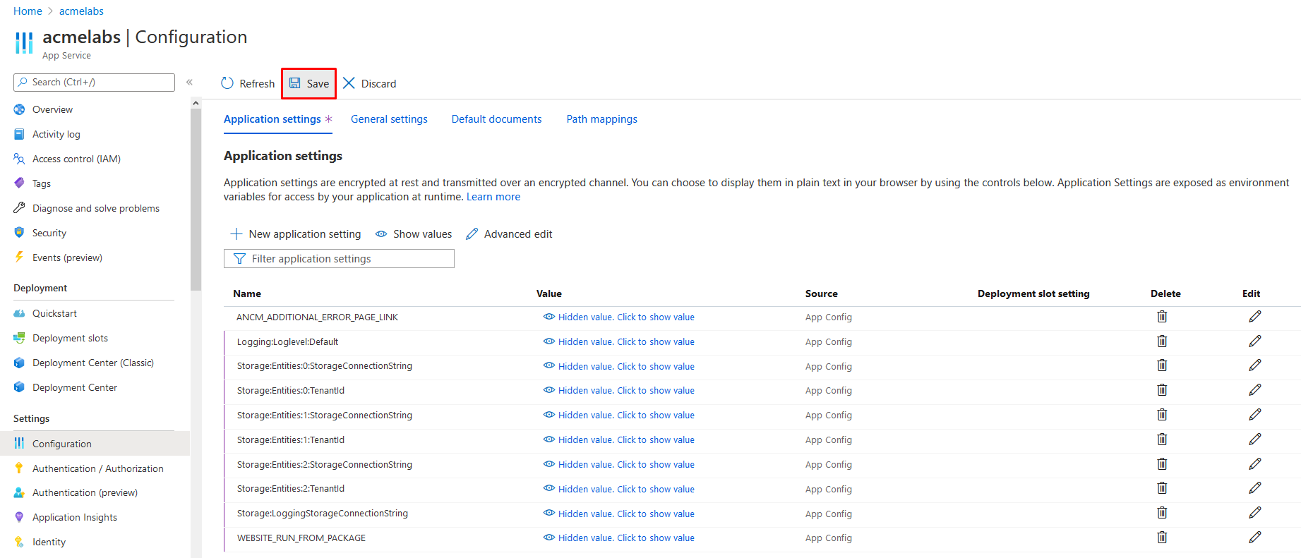 You need to configure the newly created Web Service with several application settings that enable the Web Service to communicate with the Azure tenant and storage account.