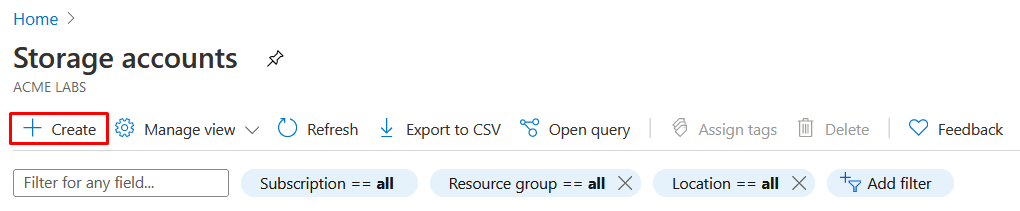 In this configuration example, acmeazure is used as the name for the blob storage account component.