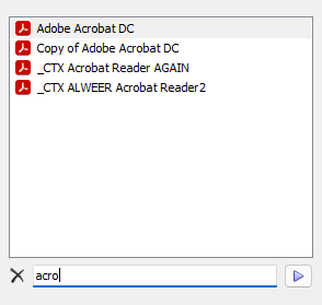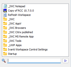 Search field at the bottom of the Ivanti Start Menu. Enter a search criteria and Workspace Control displays only the application shortcuts that contain the entered text.