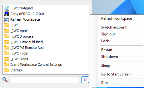 The Ivanti Start Menu can be configured to replace the Start Menu of Microsoft Windows in Workspace Control managed sessions running on Workspace Control Agents.