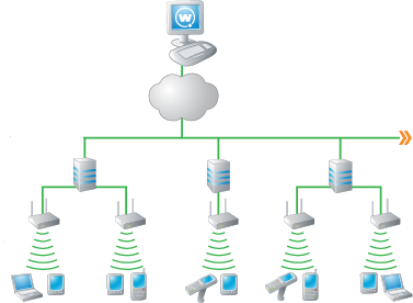 Beim zentralisierten Modell werden die Avalanche-Dienste auf einem zentralen Computer installiert. Falls sich die Anforderungen ändern sollten, kann dieses Modell in ein verteiltes Modell umgewandelt werden, indem zusätzliche Mobile-Device-Server bereitgestellt werden. Eine Deinstallation oder Neuinstallation von Avalanche ist hierzu nicht erforderlich.