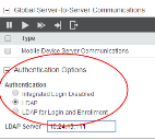 • Enable the LDAP option and then type the address of the LDAP server in the text box. This allows Avalanche Console users to log in to the Console using their LDAP credentials.