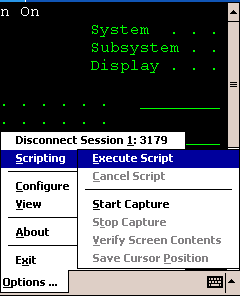 This option allows you to activate a script from the Options menu. You cannot start a script while a script is running for the current session or if the session is not connected.