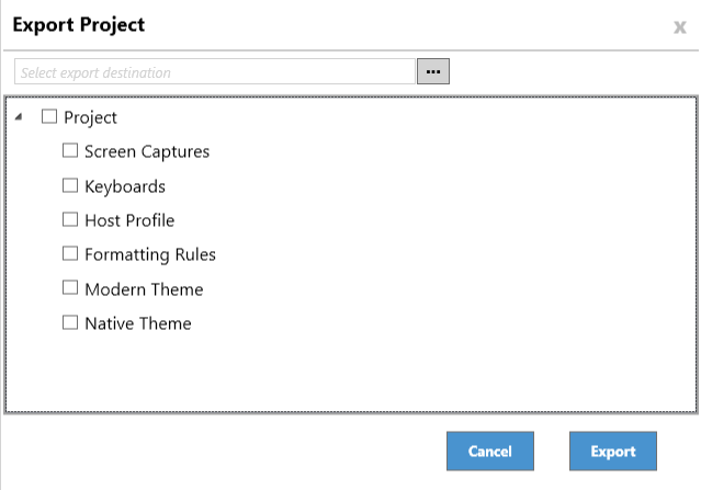 4.Select what parts of the project you want to export. To export the entire project, select the Project option.