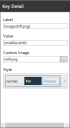 O painel Detalhes da tecla permite que você defina rótulos e valores, faça upload de imagens personalizadas e altere os estilos de coloração das telas com base tecla a tecla.Quando você selecionar uma tecla do painel Editor ou a guia Personalizar no painel Teclas, será possível alternar os comportamentos da tecla por meio do painel Detalhes da tecla. Se nenhuma tecla for selecionada, o formulário não pode ser usado. Este painel não pode ser usado para editar teclas no painel de teclas, exceto aquelas encontradas na guia Personalizar.