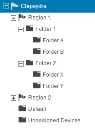 文件夹仅显示已连接到相关联的服务器的设备。在以上的示例树中,如果区域 1 和区域 2 都有设备服务器,则文件夹 A 只能显示连接到区域 1 中的服务器的设备。无论文件夹的选择标准是什么,文件夹都不能显示连接到区域 2 中的服务器的设备。