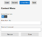 Adds a new context menu item, allowing you to specify a Menu Item Title and Shortcut Command. Menu items cannot be added at the theme level.