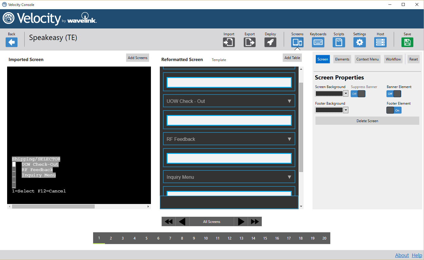 After capturing screens from the TE Client, you can import the screens associated with your host profile server to a project and stylize individual screen elements for a more unique appearance. For more information, see Capturing Screens from the TE Client.